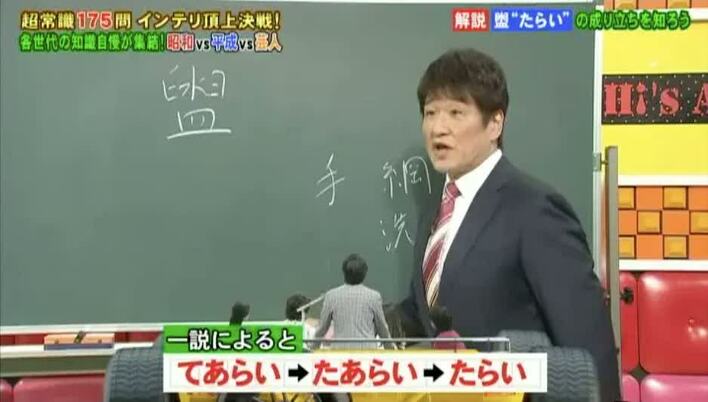 「たらい」を漢字で書く問題では、現代文担当の林修先生が文字の成り立ちを教えてくれた。これを覚えておけば、「たらい=盥」という文字が簡単に書けるようになるという。