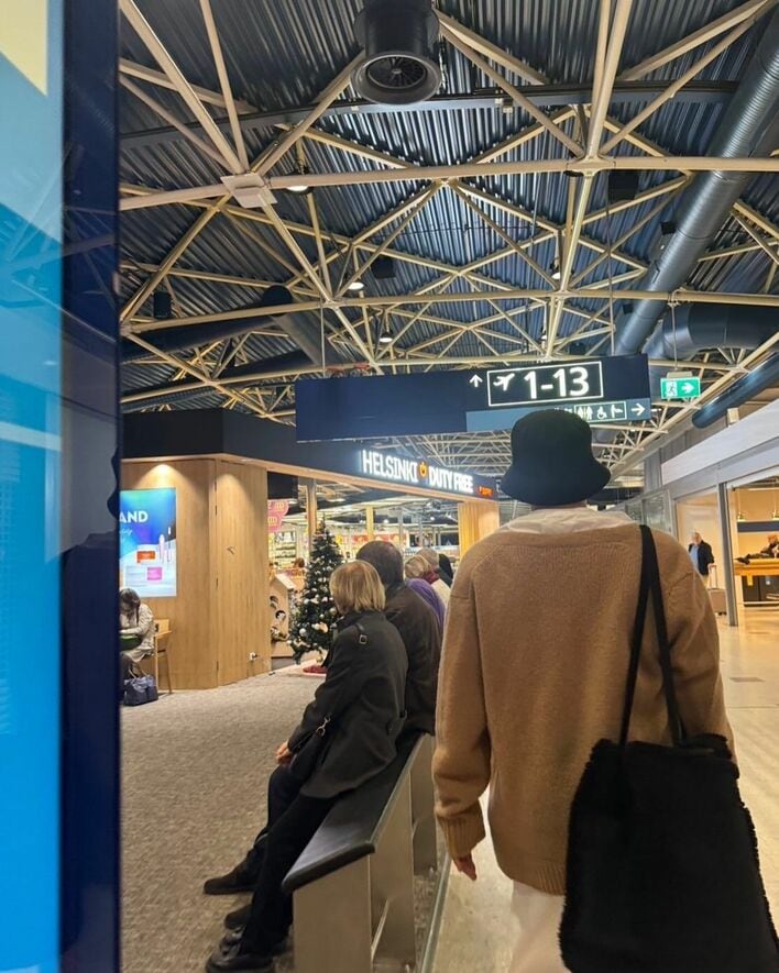 22日に、フィンランドの国旗の絵文字と共に、空港でのオフショットを披露した大沢さん。
