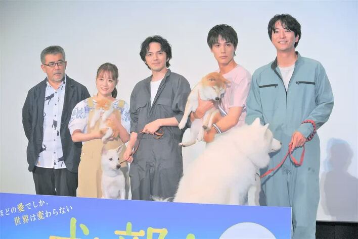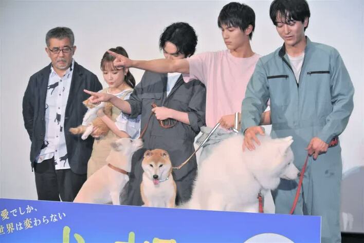 中川は「動物たちとここまでガッツリ共演するのが初めてだったので、どういうふうに一緒に芝居をつくっていけるのか楽しみにしていたんですけど、犬たちがいっぱい奇跡を起こしてくれた。僕たちが心動かされる瞬間が作品にたくさん残っているので、そこを見ていただきたい」とアピールした。