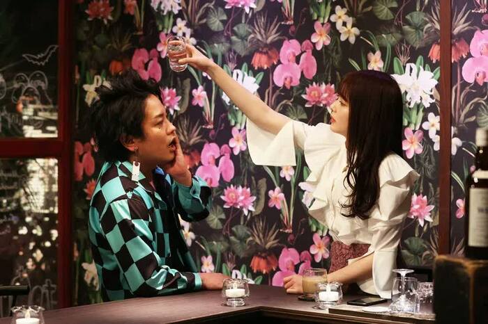 ▼決めつけの刃…ぺこぱ・松陰寺扮(ふん)する炭治郎がバーで出会った美女(久間田)に対していろいろな決めつけをしながら妄想する。