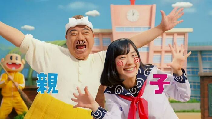 可愛らしいミニチュアの学校が舞台。芦田が「天才バカボン」のバカボン、出川がバカボンのパパに変身して登場する。