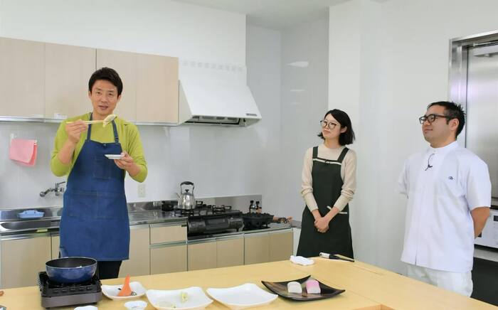 そんな松岡に、店主の上村光永さんは「かまぼこじゃなくて、特別なものを用意しています」と、「いわしのつみれ餃子」を紹介。松岡は光永さんの妻・さやかさんに教わりながら、調理に挑戦した。