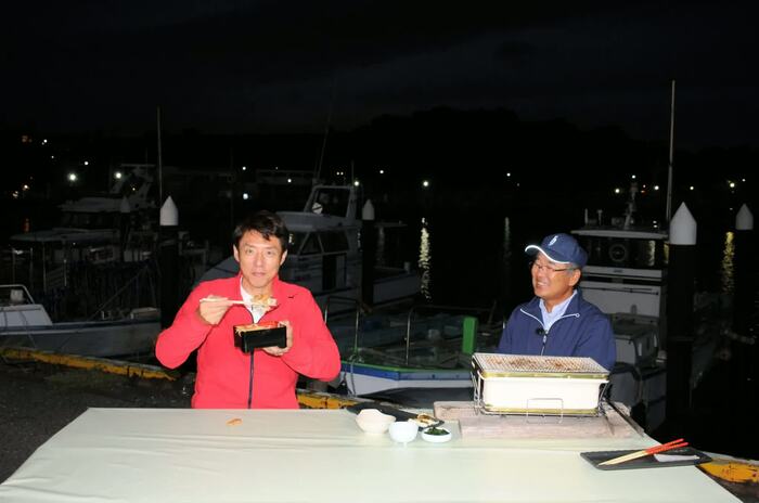 松岡は焼きあがった熱々のアナゴを手でつかみ、大きな口を開けてかぶりつくと「すっごい弾力です。味が濃い」と感想を。また「見た目よりも脂っぽさがない。さっぱりしてるからどんどん食べちゃう」と、アナゴを取る手が止まらず、その様子に齋田さんも「漁師は食べて、おいしいと言われるのが幸せです」と目を細めた。