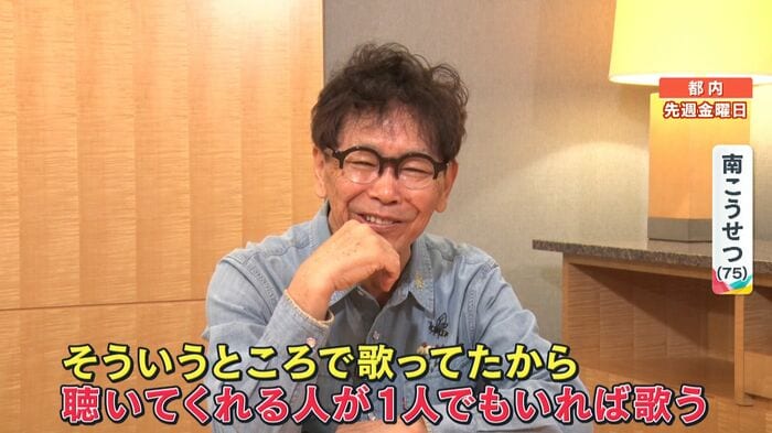 その都度、今もそうなんですけど、元々歌が好きで、ギターで人前で歌うのが。きょうはカメラさんとあなた(ディレクター)2人いますけど、そういうところで歌ってたから。聴いてくれる人が1人でもいれば歌う。それで歌を作り、歌ってきたので。
