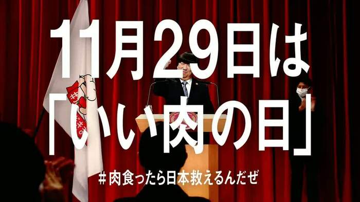 今回公開されたWEB動画は、「#肉食ったら日本救えるんだぜ『会見』篇」と「#肉食ったら日本救えるんだぜ『葛藤』篇」の2本。