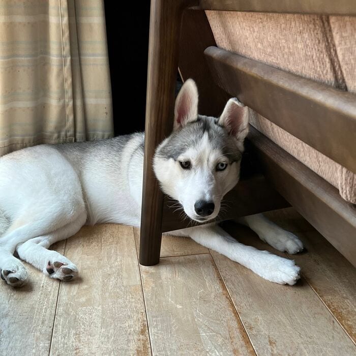 元気すぎるあまり、気付いたらソファの裏で顔がすっぽりはまってしまっているときがあるんだとか。