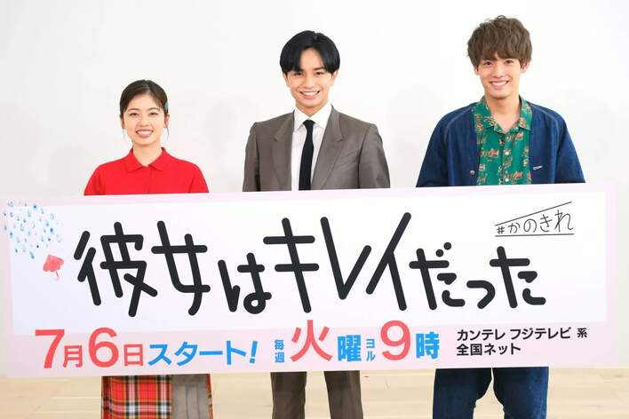 7月6日スタート、フジテレビ系『彼女はキレイだった』のリモート取材会が行われ、W主演の中島健人と小芝風花、共演の赤楚衛二が登壇した(佐久間由衣は、体調の変化により、大事をとって欠席)。