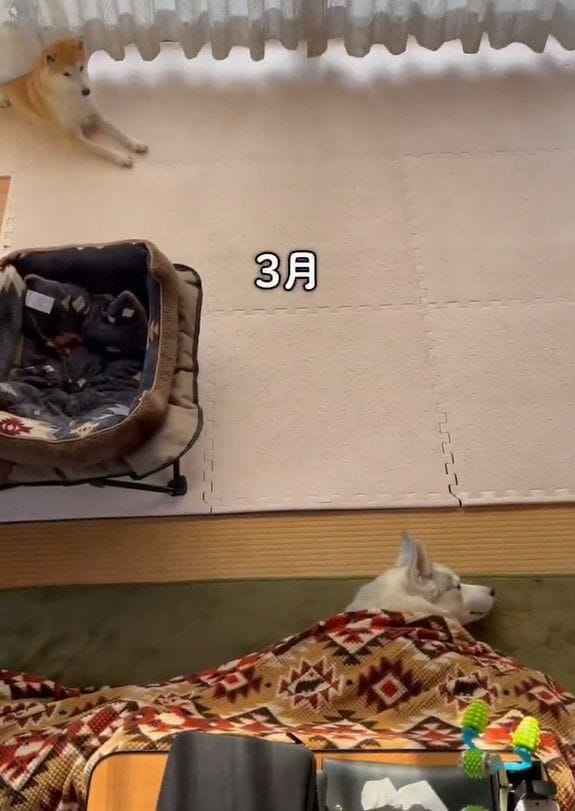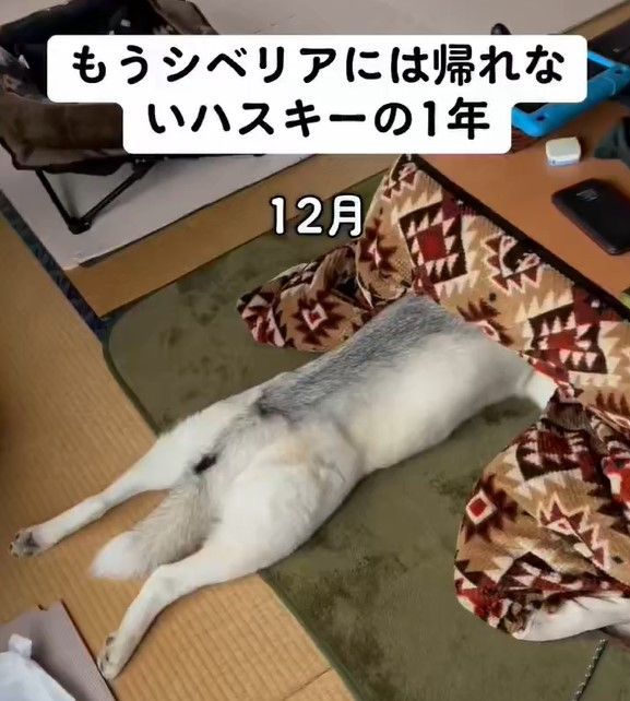 今回話題になったのは、投稿者である飼い主が「もうシベリアには帰れないハスキーの一年カレンダー」というコメントとともに公開した、こたつが大好きな「アシㇼ」ちゃんの1年をまとめた動画。