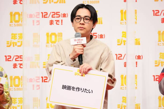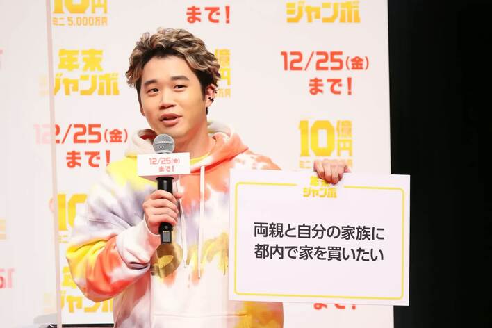 目の前に1等前後賞の当選総額である10億円が用意され、そこにかけられた幕を5人で降ろすと、突如「ありがとうございます!」と叫ぶ矢本。妻夫木に「違う、違う」とツッコまれると、「え、2億ずつ(もらえるん)じゃないんですか?」と、トボけて笑いを誘う。