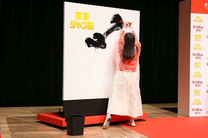 イベントでは、来年の願いを漢字一文字で表現する「ジャンボ書道」に挑戦。