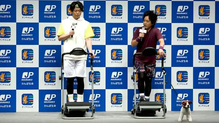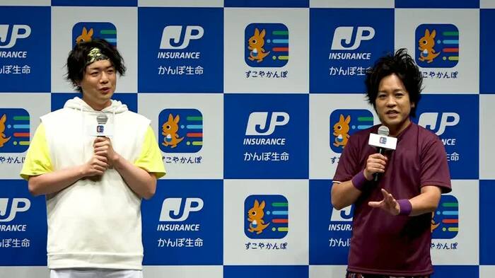 さらにイベントの終盤では、「すこやかんぽ」の機能にもある、ラジオ体操を行うことに…。淡々と体操をするシュウペイの隣で、松陰寺は手足の運動で「曲げて伸ばす、そうほぐれるのは心だ」、胸を反らす運動では「いつでも胸を張って生きていくことが大事なんだ」と、ひとつひとつの運動に説明をつけて、オリジナリティの溢れる体操を披露し、会場を笑わせた。