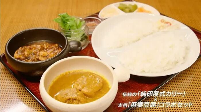 石崎さん:鶏肉、ブイヨン、玉ねぎ、スパイスなどの素材には、こだわっています。こだわりの素材をうまく調和させて作っています。そして、実は、麻婆豆腐にも歴史があり、本場の中国の四川の料理人の方から教わったのが、きっかけとなっています。こだわりのインドカリーと麻婆豆腐をコラボさせて、お出ししています。