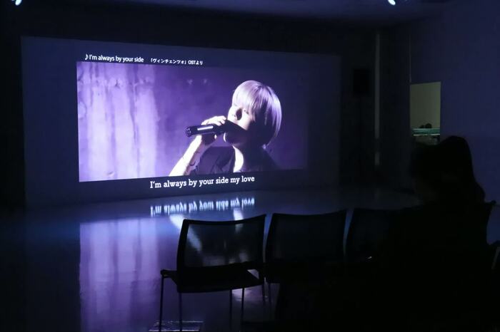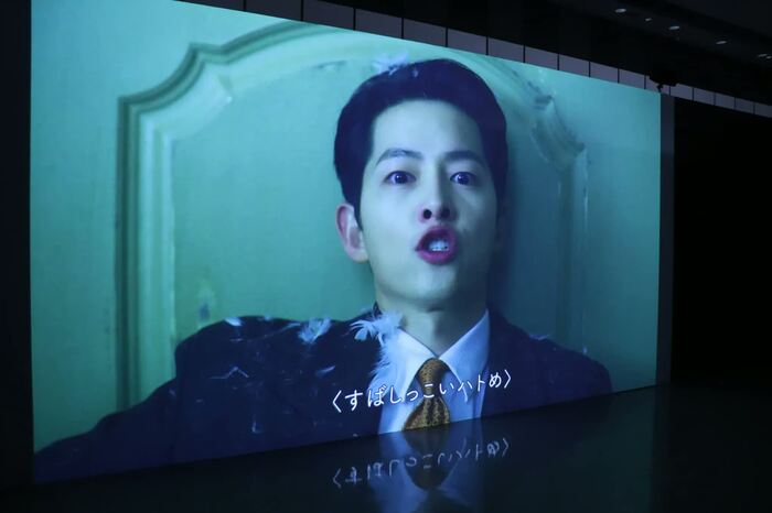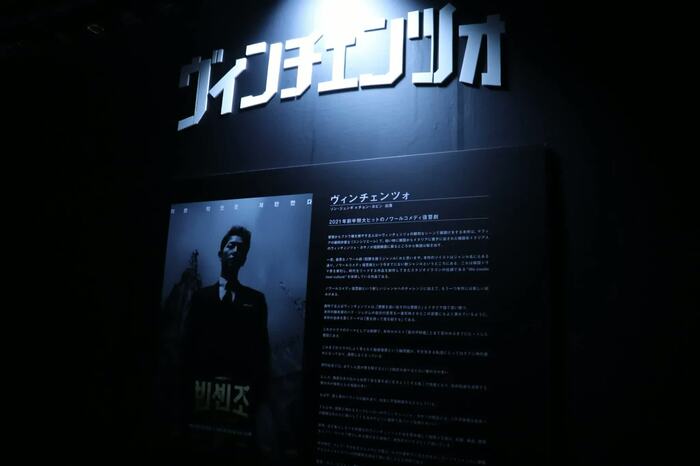 まずは、『ヴィンチェンツォ』の名シーンが流れる巨大スクリーンがお出迎え。ハリウッド大作並みのクオリティ高い映像が目の前に広がり、いっきに『ヴィンチェンツォ』の世界観へ。
