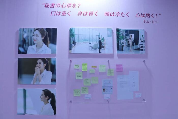 エリア内には、オッパ日記やキム秘書のデスクコーナー(ポストイット)、ぬいぐるみなども飾られたキム秘書の一人暮らしのお部屋など、ドラマで実際に使用されたアイテムの展示がズラリ。