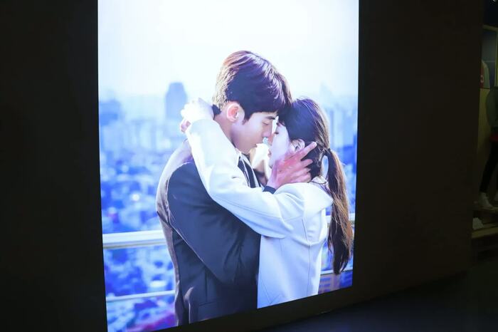 ラブコメということで、ピンクを基調にした同作品のエリアに入ると、早々にユミョングループ副会長のイ・ヨンジュン(パク・ソジュン)と、秘書を務めるキム・ミソ(パク・ミニョン)のラブシーンが目に飛び込んできて、気持ちはいっきに胸キュンモードに!