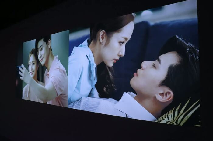 夢を掲げるメッシュパネルもあり、ここには、来場者がメッセージを書き込めるそう。その隣には、ラブシーンが写された内照式の巨大なパネルもあり、一緒に写真も撮れる。
