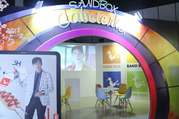 そして、中央には、若者たちの青春の夢と甘くて切ない恋を育てた場所、韓国のシリコンバレーことサンドボックスのカフェを再現したコーナーが。