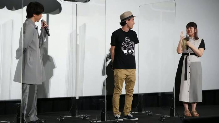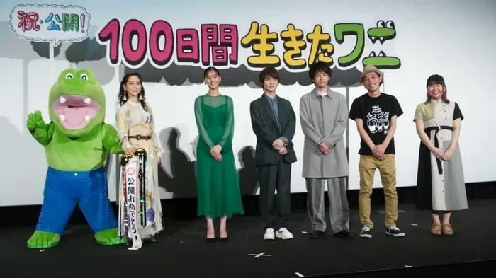 7月9日(金)、映画「100日間生きたワニ」の初日舞台挨拶が行われ、神木隆之介、中村倫也、新木優子、ファーストサマーウイカ、監督を務めた上田慎一郎、ふくだみゆきが登壇した。