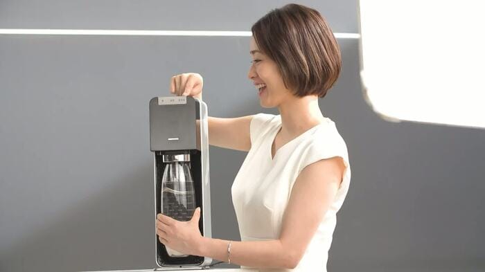 今回のCMでは、強炭酸ハイボールや、炭酸水を使って炊き上げたふっくらご飯など、様々な活用法が紹介。上戸がお気に入りだと話す、栄養満点のコンブチャを始めとしたオーガニックシロップ「ソーダプレス」もCMに登場している。