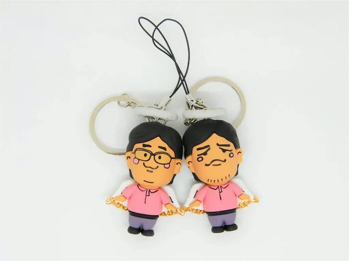 昨年12月の放送(第2弾)時には、サンドウィッチマンのふたりが扮するガラケーのエンジェル“ガラとケー”がストラップキーホルダーとして商品化された。2体で2,200円(税込)、とそんなにお安くない価格設定にも関わらず、初回製造分があっという間に完売したという。