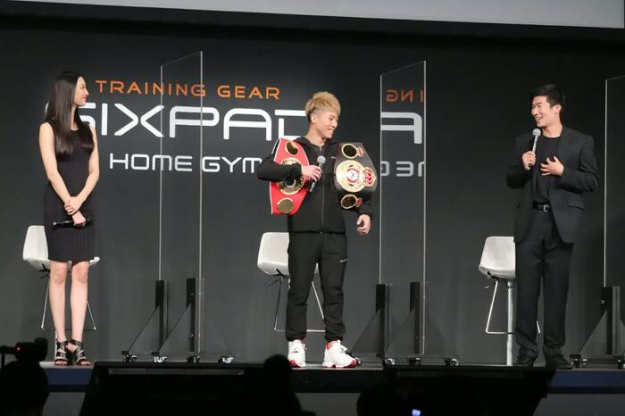 さらに、井上はイベントで「SIXPAD HOME GYM」を体験。ハードなトレーニングを終えて「試合終わったばっかですよ。心拍数あがってツライですね」と苦笑いし、「トレーニングは継続してやることが大事。楽しくできるのでいいですね」と爽やかな笑みを見せた。