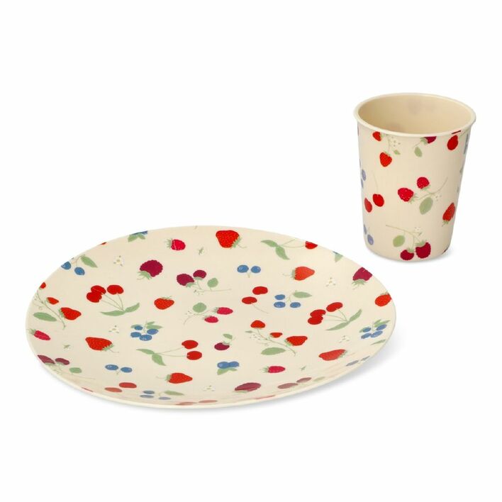 ブルーベリーやラズベリー、チェリーなど様々なベリー系デザインが加わっています。プレートとカップはプラスチック素材なので繰り返し使うことができます。
