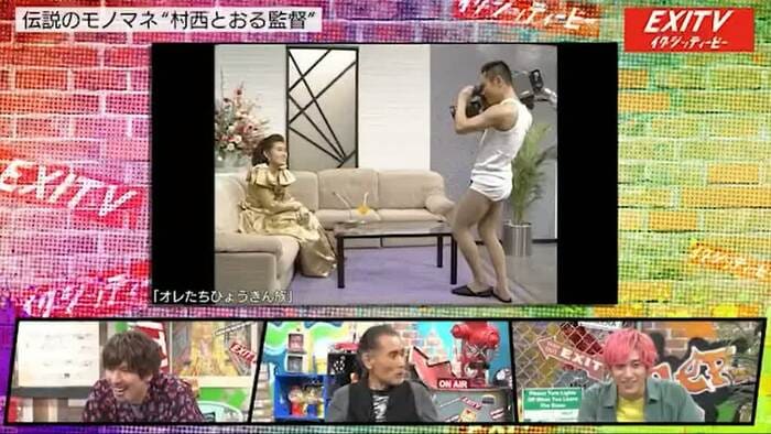 白いブリーフ姿で土曜のゴールデンタイムに村西監督のモノマネを披露したVTRが紹介されると、当時を再現するかのようにおもむろにスタジオでカメラを担ぎ、伝説の村西監督のモノマネを披露する片岡。「ナイスですね!」などのキレの良いおなじみのセリフが飛び出すと、りんたろー。と兼近は大喜びし、片岡のレジェンド芸に浸っていた。
