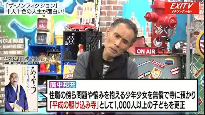 その中で「特に一番好きだった放送回」として、廣中邦充住職が問題や悩みを抱える少年少女を無償で寺に預かり、「平成の駆け込み寺」として1,000人以上の子どもを更生させた“熱血和尚シリーズ”について熱弁した。