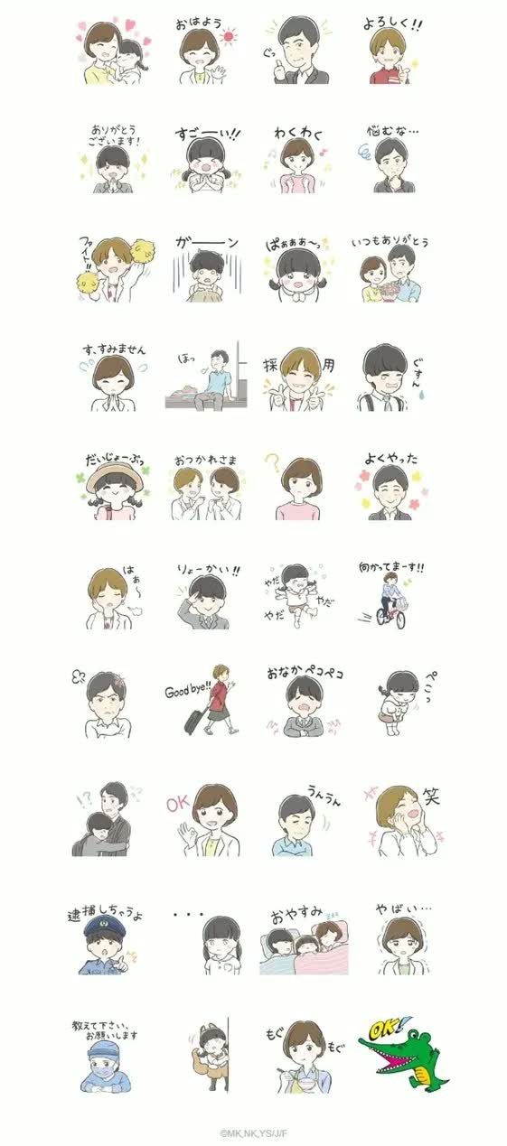 LINEスタンプでは、万木家の4人と、法医学教室の主任教授・夏目茶子(山口智子)が愛らしくホッコリとしたイラストになって登場する。