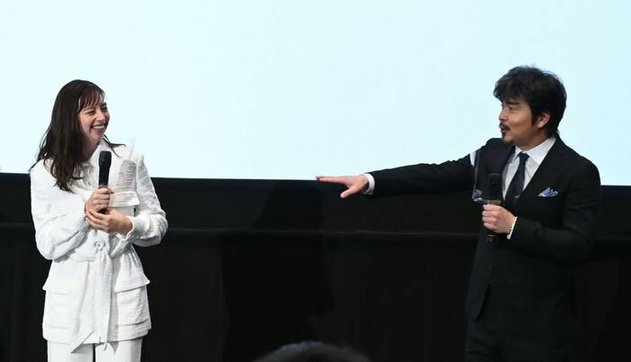 飛沫対策として、登壇者のマイクには透明な“マイクシールド”が装着されていたこの舞台挨拶。顔にかぶってしまうと、取材陣の写真や映像に影響が出るため、事前に注意されていたものの、中条も杉野もほとんど注意せずにいたことが気になった小澤が、進行を止め「まず言っていいですか!これかぶらないようにって言われたよね、出る前に!」と指摘。