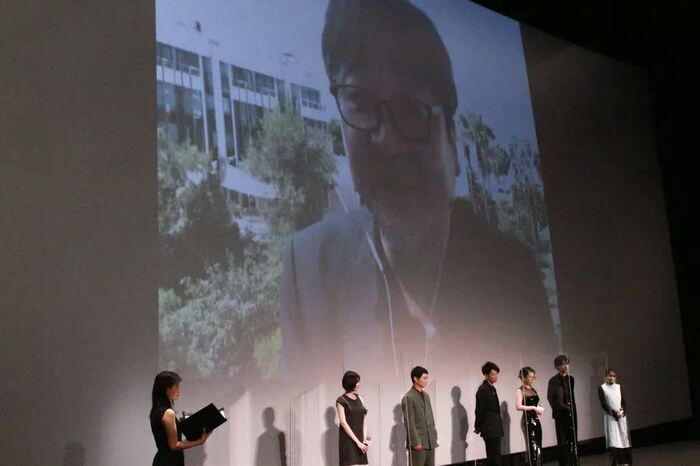 イベントの終盤には、フランスのカンヌ映画祭に参加している細田守監督がリモートで参加。会場のスクリーンに映しだされた細田監督は「どうもこんにちは!今、フランスはお昼の12時くらいです。コロナ禍の中でしんどい思いをしながら作った作品ですので、皆さまに喜んでいただけるとうれしいです。よろしくお願いします!」と笑顔であいさつ。