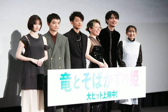 7月16日(金)、アニメーション映画「竜とそばかすの姫」の完成報告会が行われ、声優を務めた、中村佳穂、成田凌、染谷将太、玉城ティナ、幾田りら、佐藤健、が登壇した。