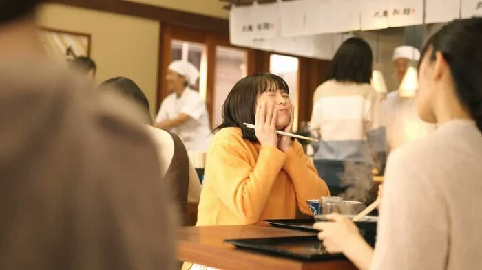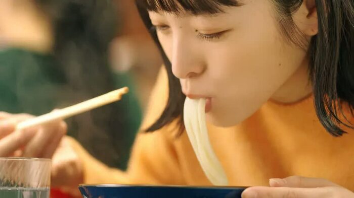 大好きな丸亀製麺のうどんをたくさん食べられたので良かったです。“美味しさ”を表現するカットを何回も何回も撮影していると、セリフや表情に新鮮さを出すのが難しくて、そこは苦戦していたなと思います。でも食べるのが本当に好きなので、ただ素直に美味しいって食べているだけで、全然大変じゃなかったです(笑)。美味しく食べさせていただきました。