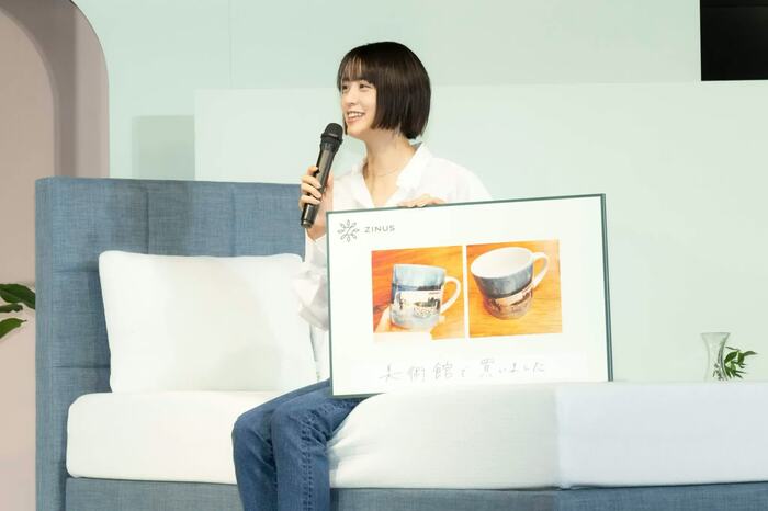 「自宅で日常使いしているお気に入りのもの」を紹介する場面では、マグカップの写真と、(藻の一種の)ミカヅキモの箸置きが2つ並んだ写真を披露。マグカップは、現代アーティストのピーター・ドイグの展示に足を運んだ美術館で購入したといい、箸置きは、雑誌の企画で陶芸をした際に作ったものだという。