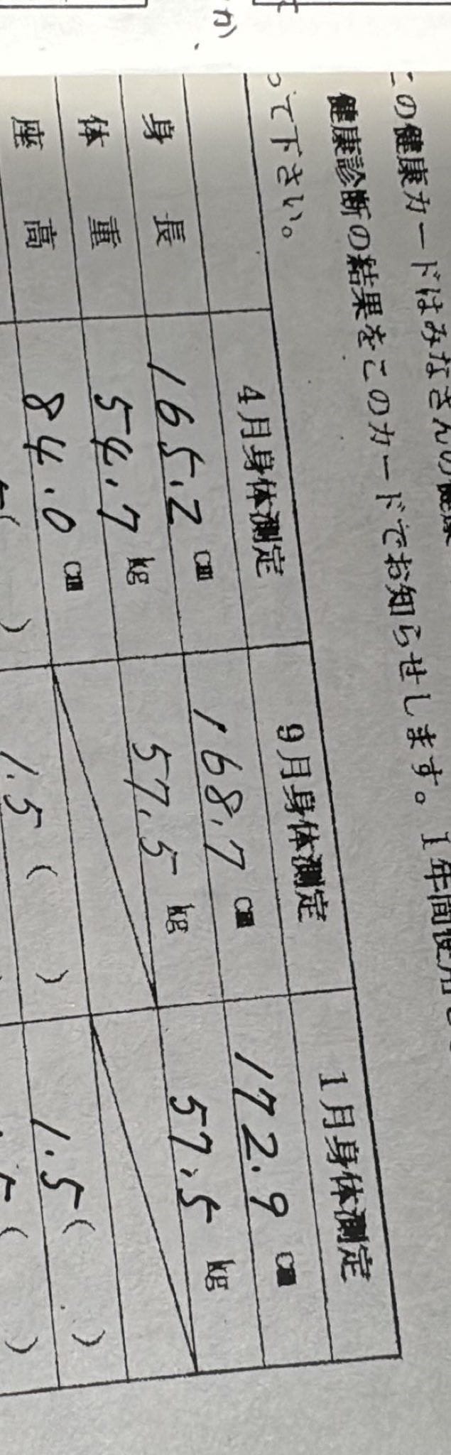 そこに記されていた身長は、4月165.2cm、9月168.7cm、1月が172.9cmとすでに“大人並み”!
