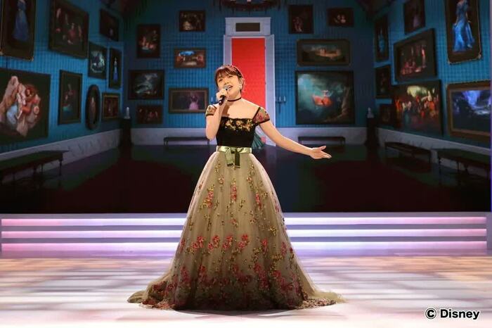 ディズニープリンセスの名曲の数々と、プリンセスならではの衣装、ステージでは作品の名シーンも流れる。
