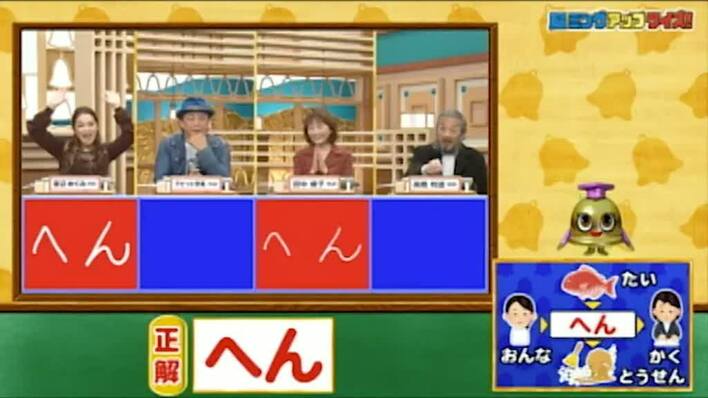 正解は「へん(女へん・大変・変革・扁桃腺)」。渡辺と田中が正解!