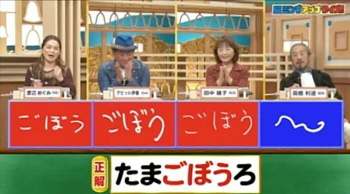 正解は「たまごぼうろ」。渡辺、デビット、田中の3人が正解。