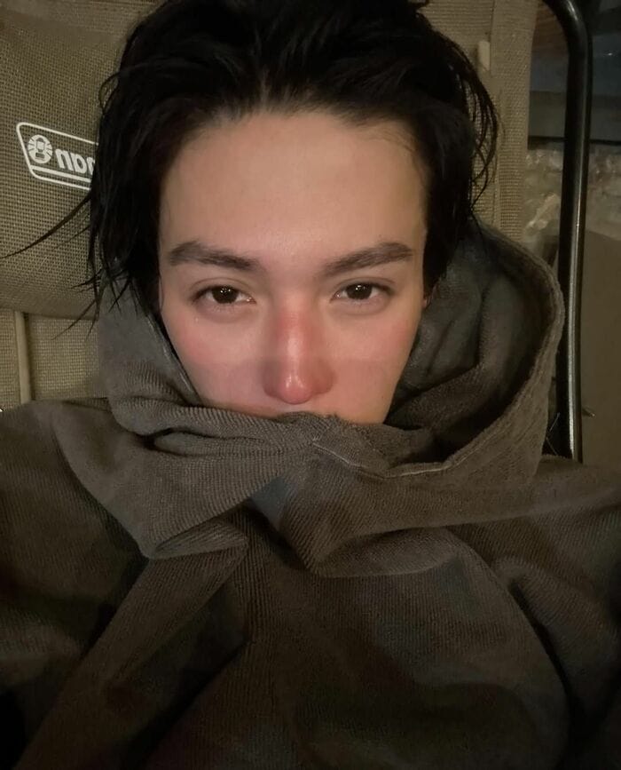 この日は趣味のサウナを楽しんだのか、2枚目にはサウナポンチョに身を包んだショットも公開。