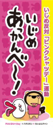 カナダでは、2月最終水曜日を「ピンクシャツデー」とし、賛同者がピンクシャツを着て「いじめ反対」のメッセージを発信していて、この日は首相やニュースキャスターもピンクシャツ等を着用するなど社会に広く定着しています。日本でも少しずつ賛同の輪が広がっていて、関西テレビは、2023年から賛同し支援しています。