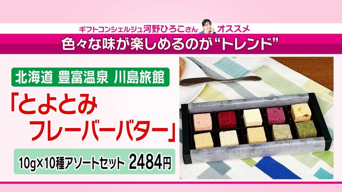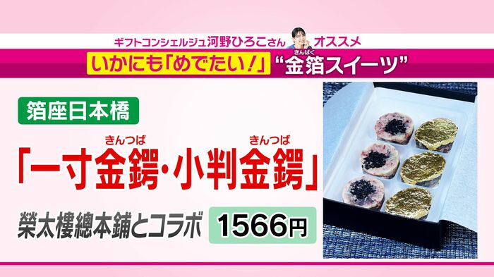 他にも河野さんは、「箔座日本橋」が「榮太樓總本鋪」とコラボした「一寸金鍔・小判金鍔」という見るからにおめでたい商品や、ハーフボトルに約30個分のイチゴが使われている「ベジターレ」の「苺のノンアルコールスパークリング」、さまざまな味のバターが詰め合わせになった北海道豊富温泉・川島旅館の「とよとみフレーバーバター」をオススメ。