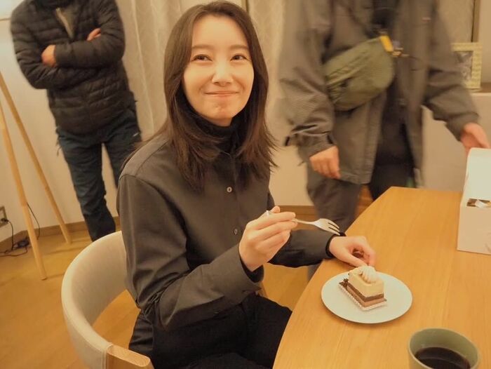 「ごはんはたくさん食べられています 冷蔵庫にたくさんの干し芋があり、しあわせです」というコメントとともに撮影現場の冷蔵庫の前で立ちながらケーキを食べているショットも投稿!忙しい撮影の合間にもしっかりと食べられているということで、ファンも安心です。
