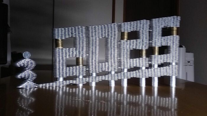 実はこちらのコイン、一枚一枚をピンセットで重ねているんです!気の遠くなる作業のはずですが、製作時間は1時間かかっていないということで驚くばかり…。