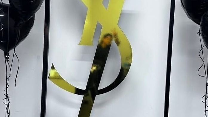 黒いハートの風船に囲まれた、立体的な「YSL」のロゴを写したショットも披露!