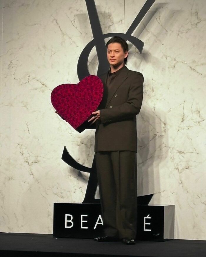 平野さんは「I LOVE YOU SO」とコメントし、新「イヴ・サンローラン・ボーテアンバサダー」の就任発表とWEB CMを披露する記者会見に登壇した際のオフショットを公開。