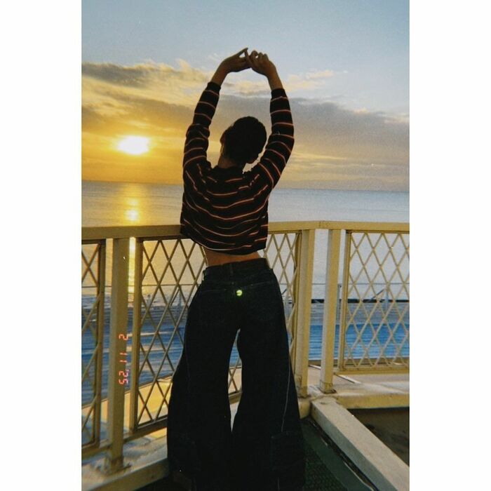 自身でリメイクしたデニムパンツの斬新なデザインに、ファンから反響が寄せられています!