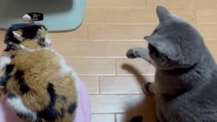 触っただけでそんなに怒る!?最後まで注目の猫のやりとり
