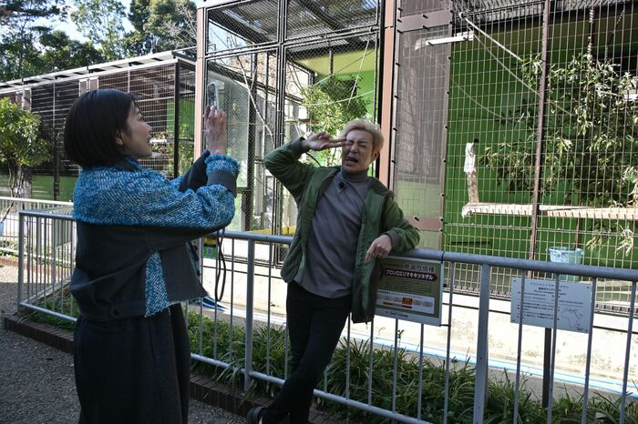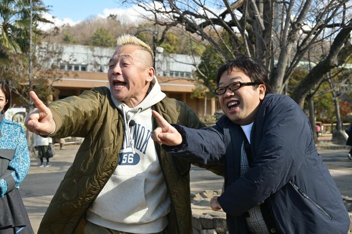 東山動植物園で行われるゲームでは、動物の名前と写真をどちらが多く集められるかで対決。キャイ~ンの2人が園内を必死でかけ巡ります。