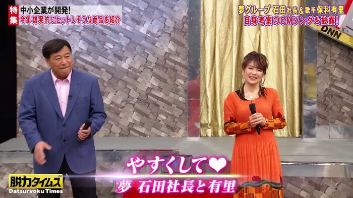 4社目は、テレビショッピングやコンサートなどを手がける「夢グループ」の社長・石田重廣さんと、歌手の保科有里さんが登場。