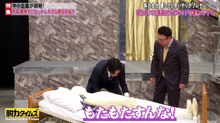 3社目は、福祉用具メーカーの社長と部下が登場し、画期的な介護用パジャマを紹介。